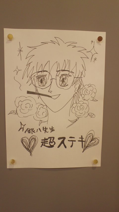 もーすんげえ人が群れててでんでん撮影しきらなかった、下駄箱…。銀さんピンクスリッパなのはいいとして、あのドヤァ君も皆と同じ上履きを地味に履きこなしてるらしいあたりは、ぜひ記録したかったのに…